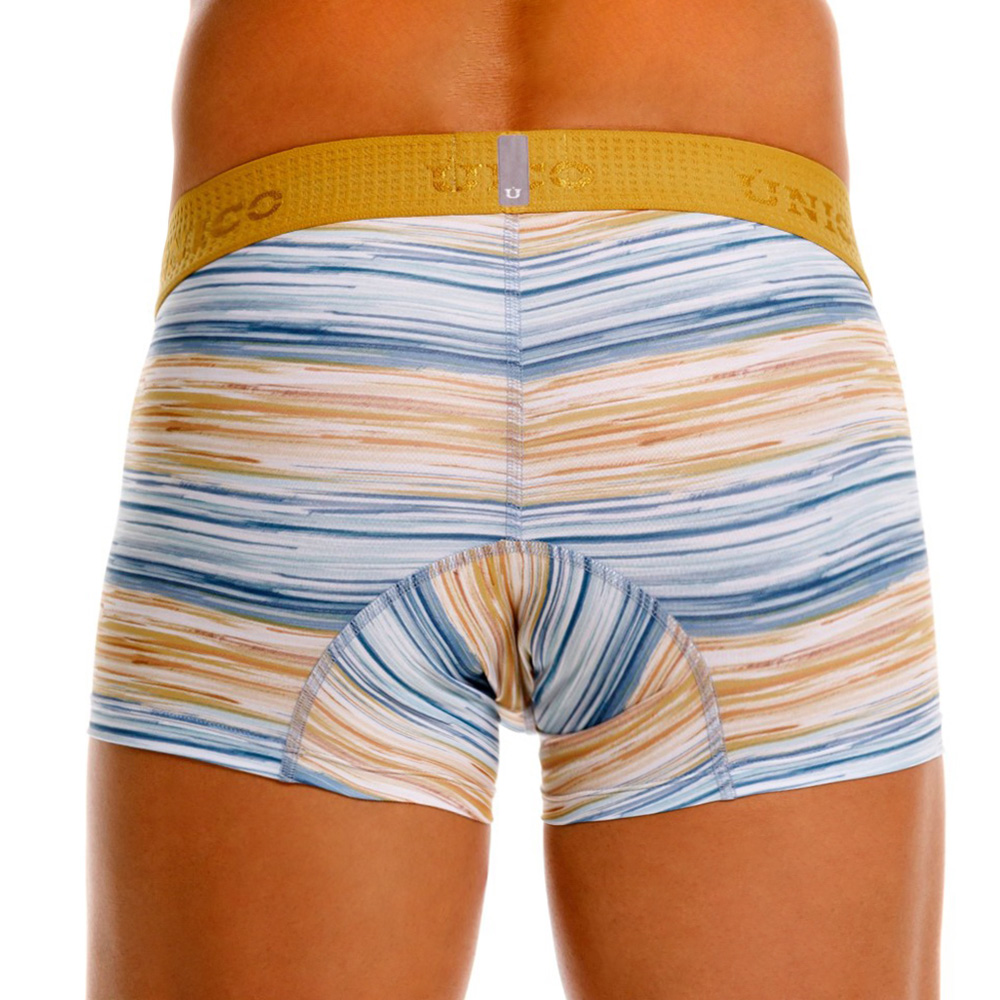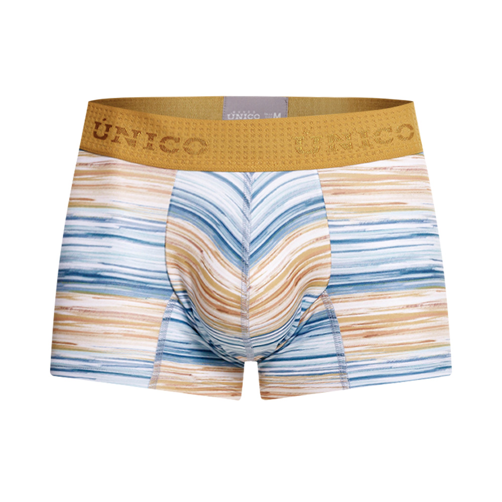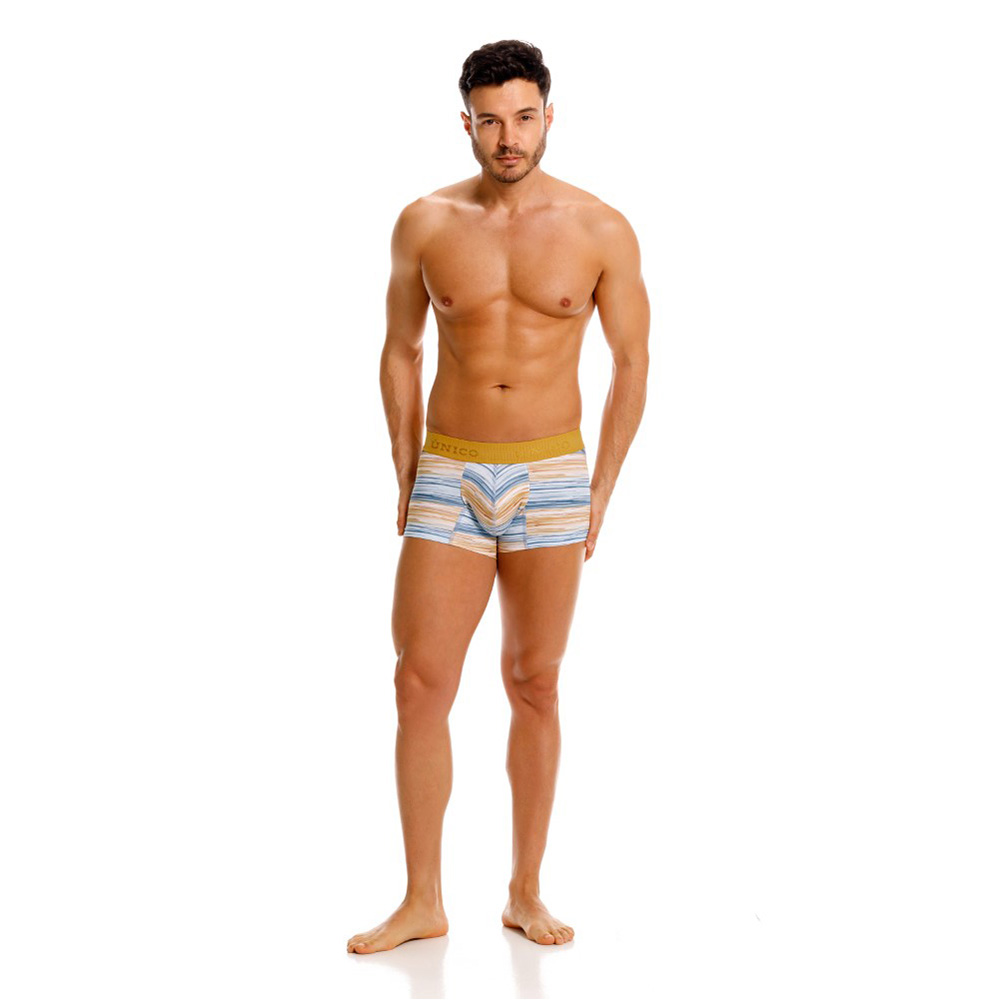 ÚNICO präsentiert: Modell Lejania. Ein ausdrucksstarkes Design mit streifeninspiriertem Muster – grafisch, modern, markant. Der elastische Bund mit eingewebtem Logo und Schriftzug setzt einen sportlich-eleganten Akzent. Das anatomisch geformte Suspensorium sorgt für perfekten Sitz – den ganzen Tag. Hochwertige Materialien und präzise Verarbeitung garantieren Qualität, auf die Du dich verlassen kannst.