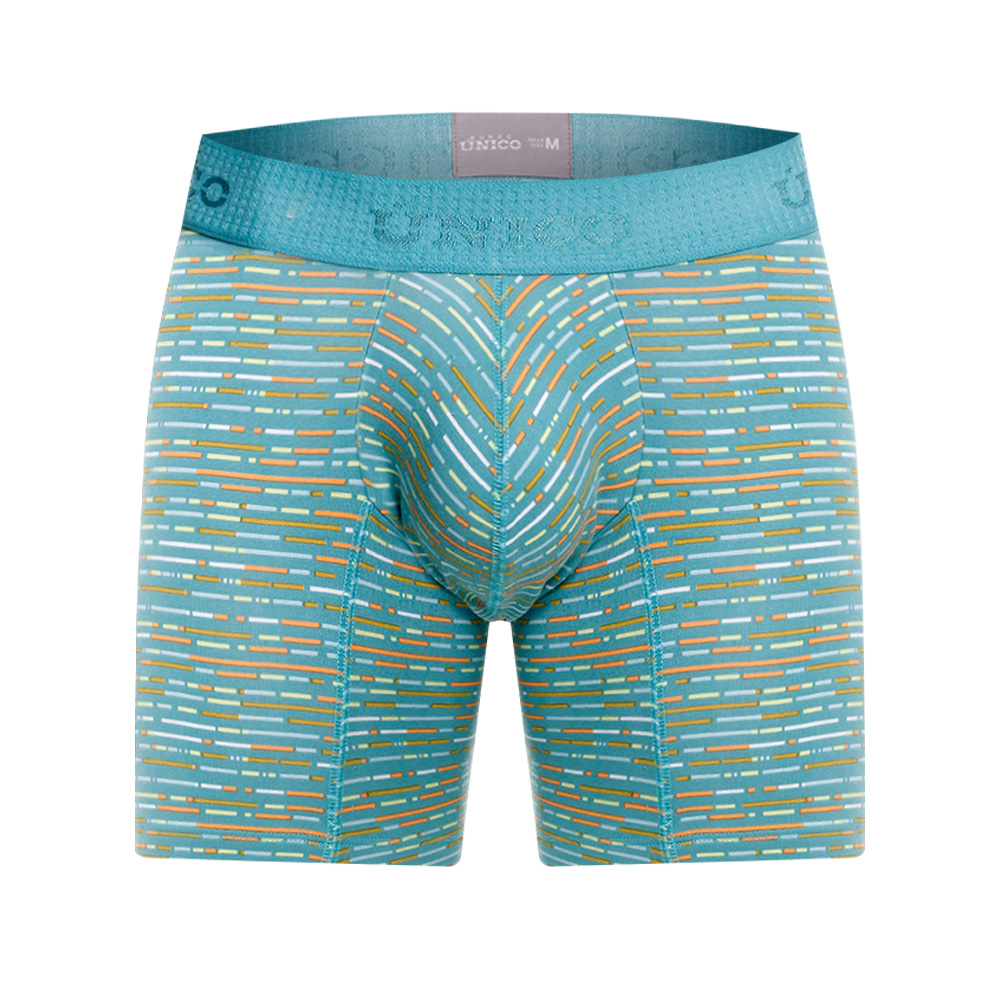 ÚNICO präsentiert: Modell Pespunte. Ein ausdrucksstarkes Design mit streifeninspiriertem Muster – grafisch, modern, markant. Der elastische Bund mit eingewebtem Logo und Schriftzug setzt einen sportlich-eleganten Akzent. Das anatomisch geformte Suspensorium sorgt für perfekten Sitz – den ganzen Tag. Hochwertige Materialien und präzise Verarbeitung garantieren Qualität, auf die Du dich verlassen kannst.